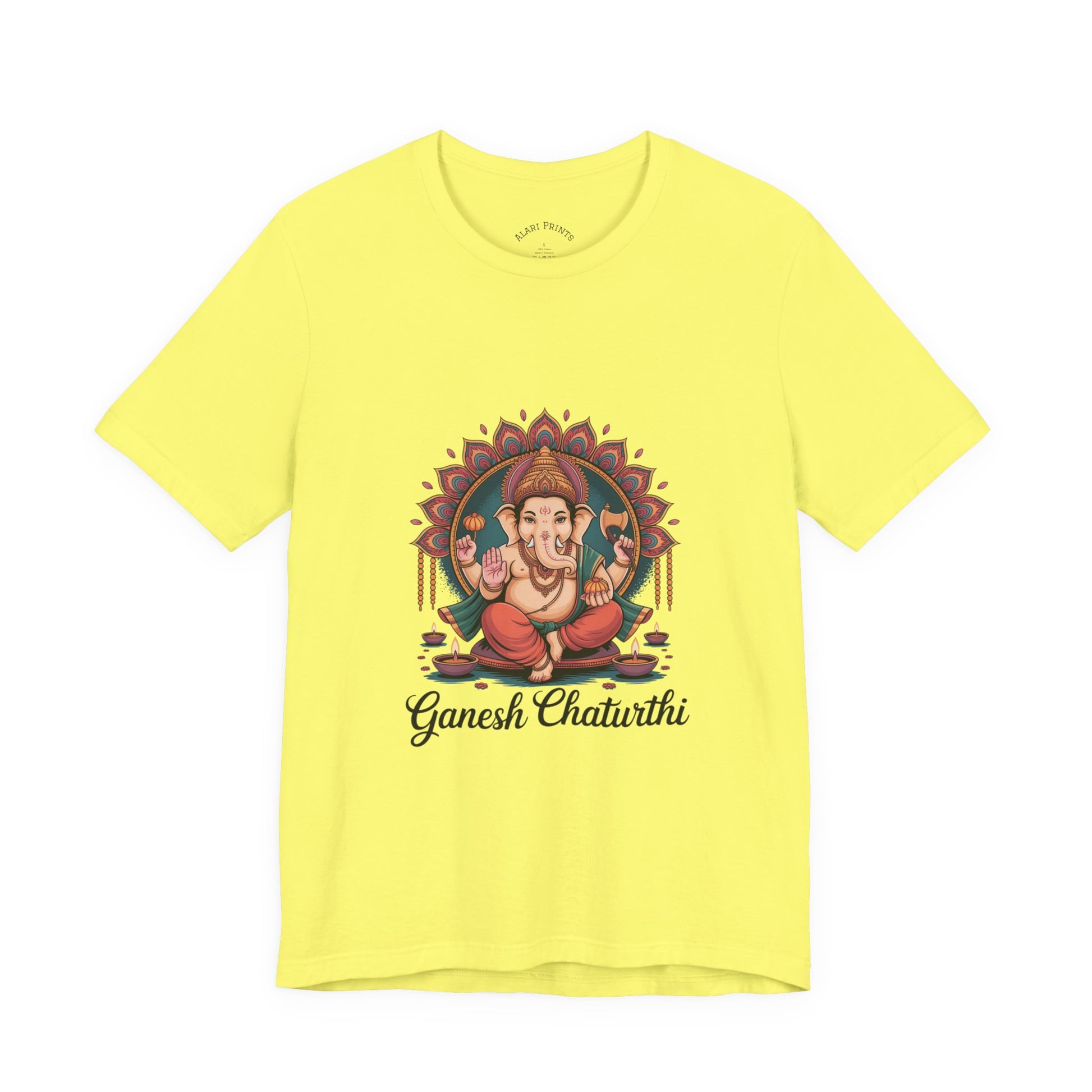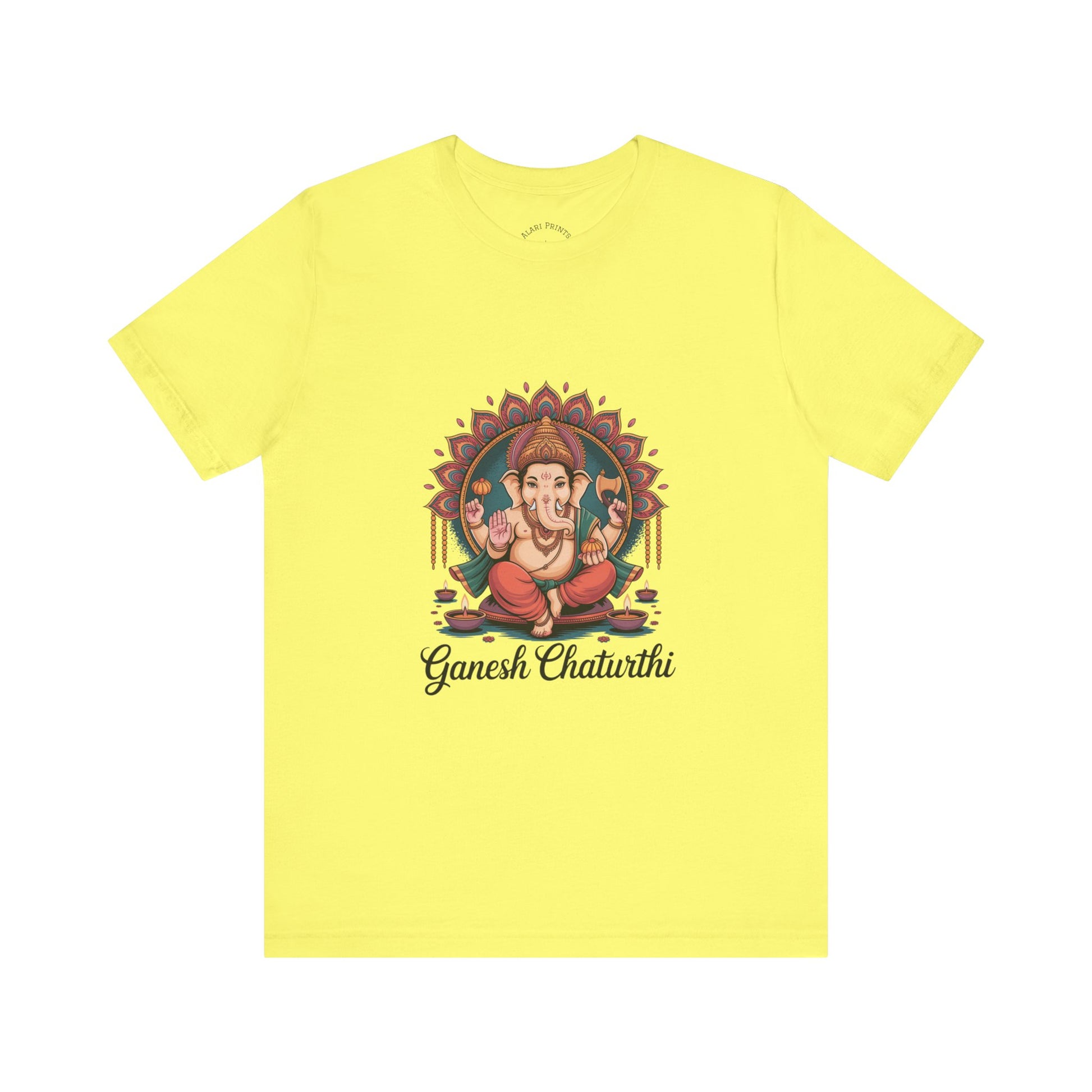 Embrace your spiritual side with this stylish Unisex Jersey Short Sleeve Tee. Featuring a beautifully detailed design, it radiates warmth and positivity, perfect for celebrating significant occasions like Ganesh Chaturthi or other cultural festivities. This tee promotes a sense of community, making it an ideal choice for family gatherings or casual outings with friends. Its versatile look ensures you can wear it comfortably for both relaxation and broader social events, capturing the essence of celebration in every thread. Ideal for art enthusiasts, spiritual seekers, and anyone looking to infuse their wardrobe with culture and meaning, this shirt is a must-have for special occasions and everyday wear alike.