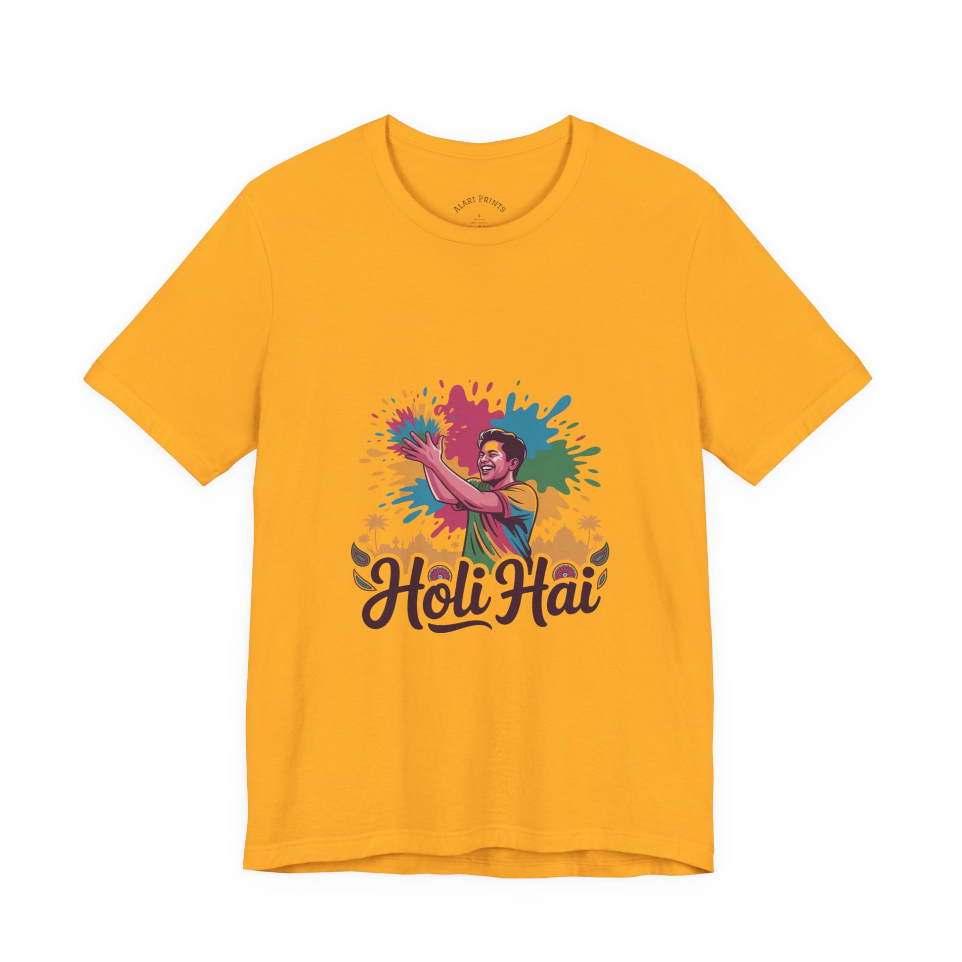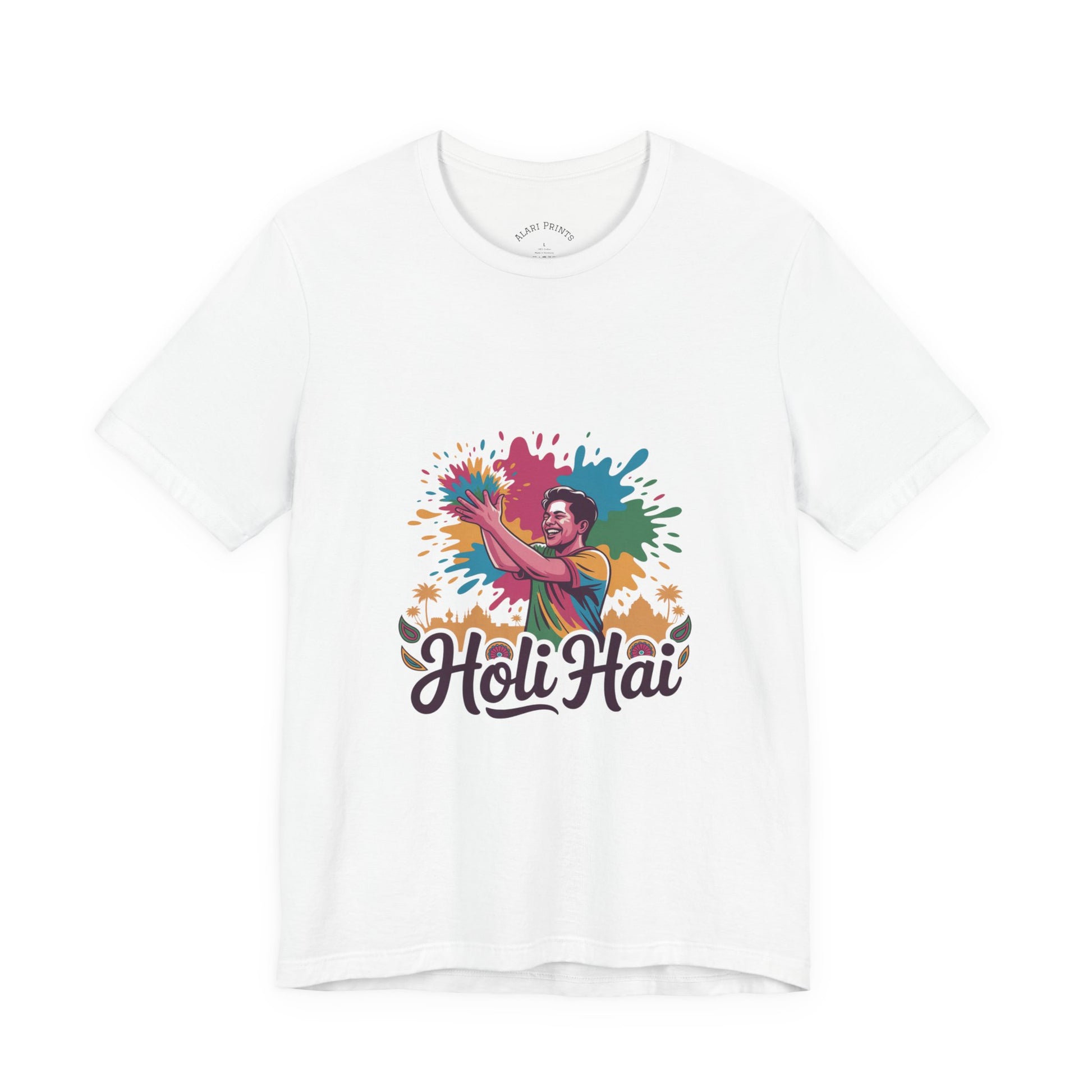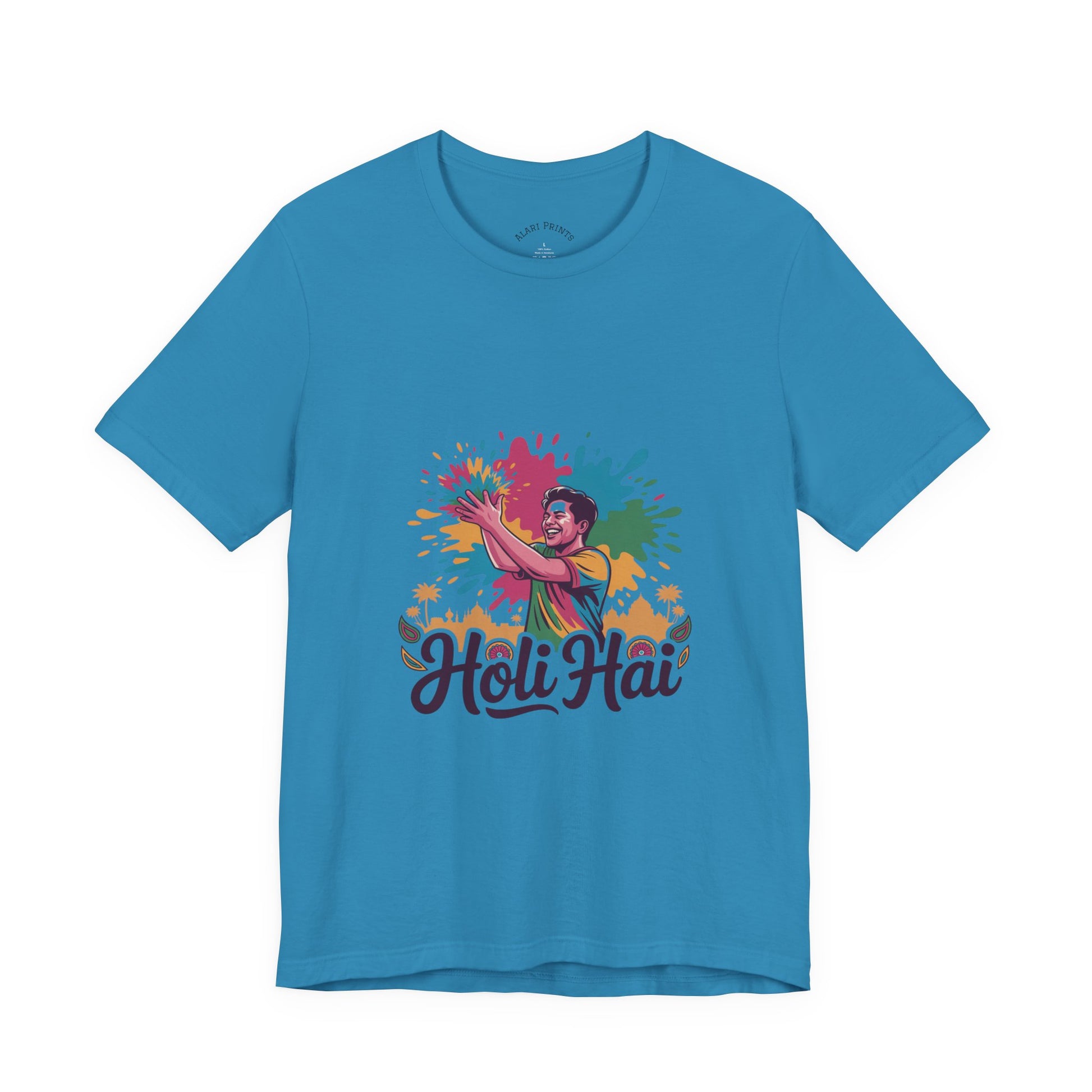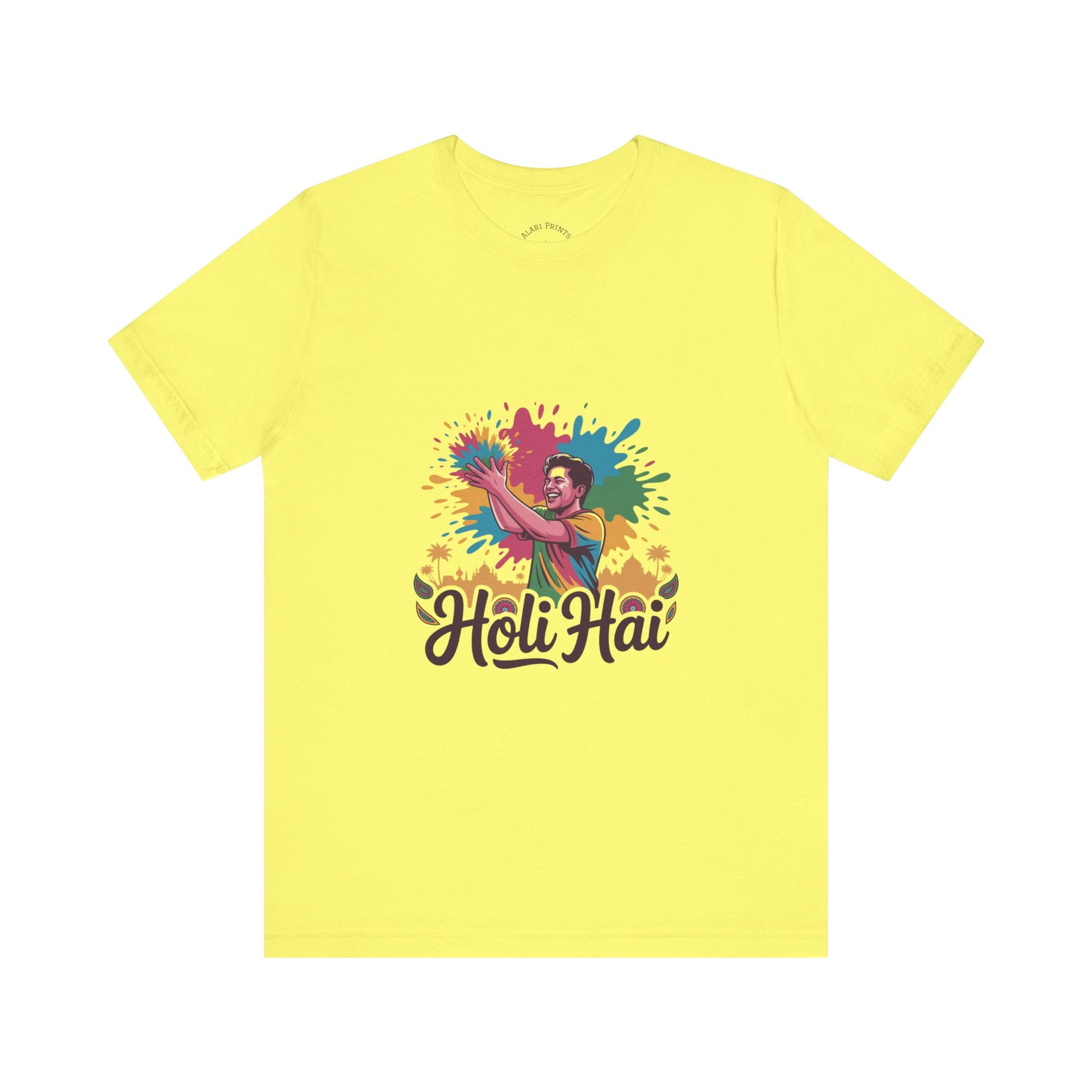 Celebrate the joy and vibrancy of life with this Unisex Jersey Short Sleeve Tee, perfect for those who appreciate color and fun. Made with 100% Airlume combed and ring-spun cotton, it offers a lightweight and breathable feel, ideal for warm days or layered looks. The eye-catching design makes it a standout piece, adding a splash of creativity to casual outings or festive gatherings. Whether you're dressing up for a holiday celebration or simply enjoying a sunny day out, this tee brings a lively and playful atmosphere to your wardrobe. It's perfect for people of all ages who love to express themselves during significant occasions like Holi, birthday parties, or family reunions.