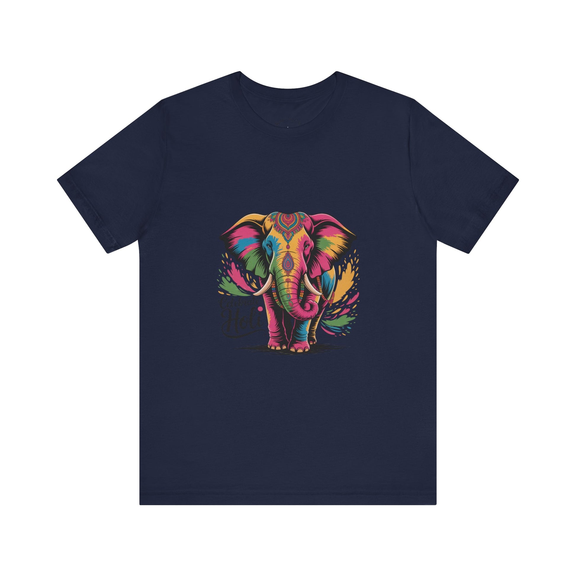 Embrace vibrant celebrations with this striking Unisex Jersey Short Sleeve Tee, perfect for showcasing your unique style during festive occasions. The eye-catching elephant design reflects cultural richness and joy, making it a great addition to your wardrobe for Holi, festivals, or any casual outing. This tee blends comfort and flair, making it an essential piece for anyone looking to express their fun-loving spirit. Ideal for those who appreciate art, culture, and celebration, this shirt is a thoughtful gift for friends and family celebrating significant events in their lives. Wear it while gathering with loved ones, attending festivals, or simply enjoying a lively day out.