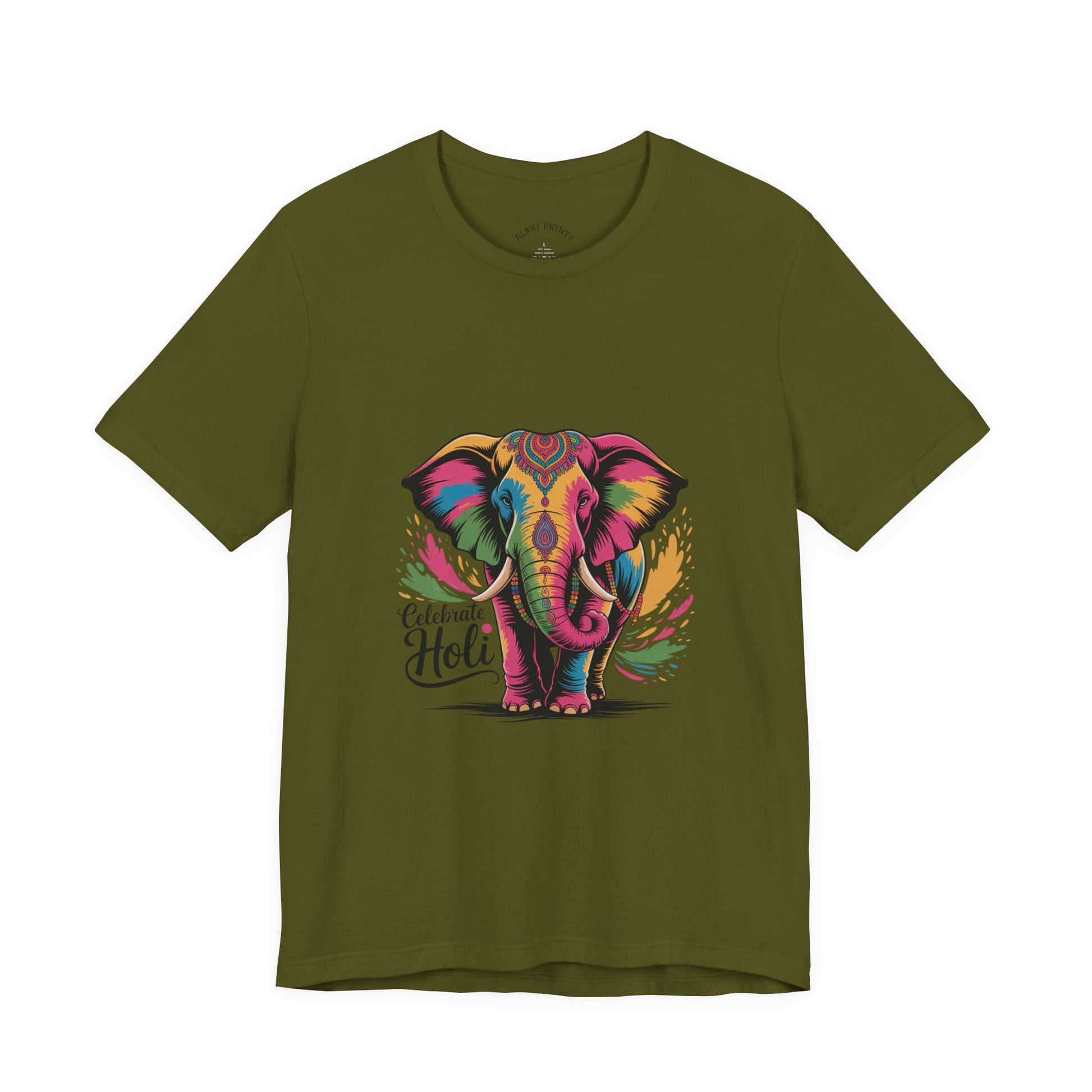 Holi Festival T-Shirt, Colorful Elephant Holi Tee, Color Splash Tee, Festival Party Wear