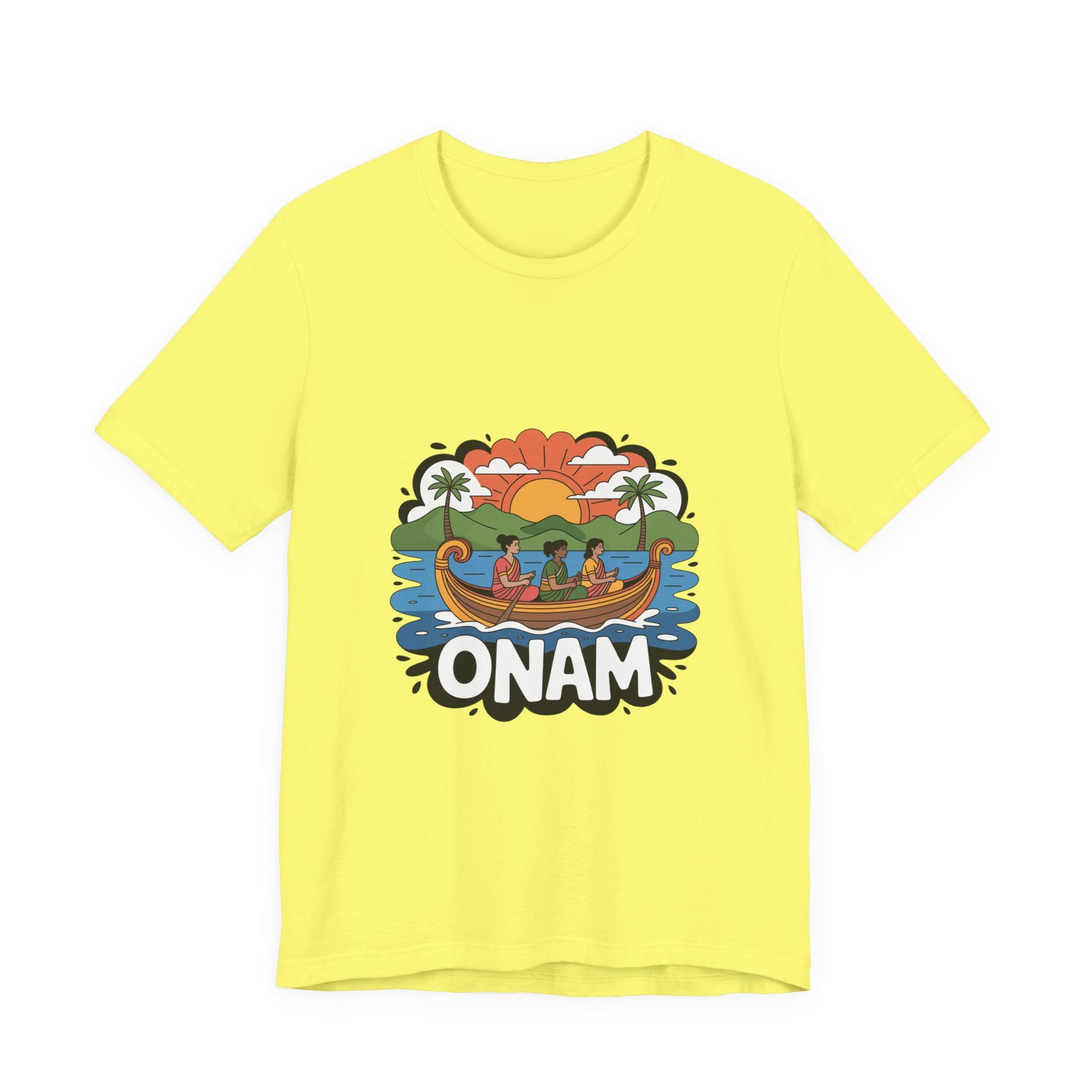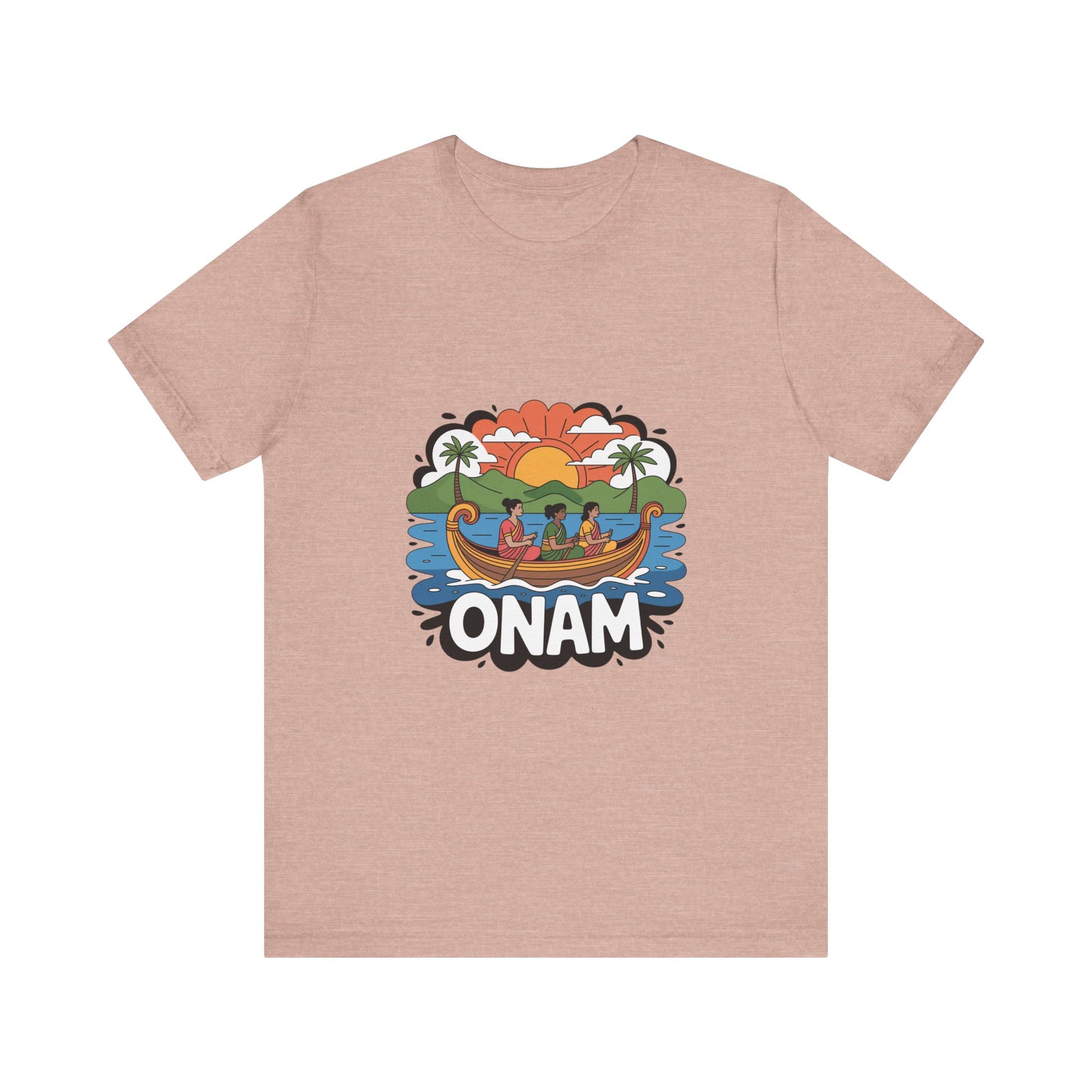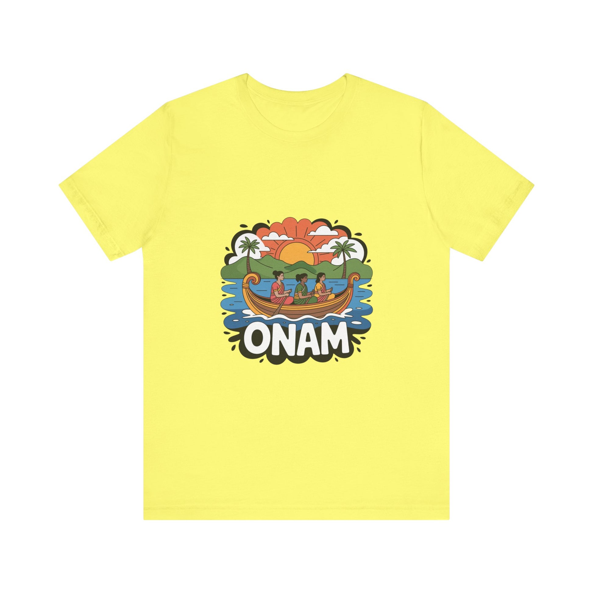 Introducing a stylish Unisex Jersey Short Sleeve Tee that perfects your casual wardrobe. Designed with comfort in mind, this shirt feels soft against the skin, perfect for lounging at home or a day out with friends. The vibrant and lively graphics bring a joyful vibe, making it an excellent addition to your celebration attire. Ideal for anyone who loves to express their unique style, this tee is especially relevant during festive occasions like Onam and other cultural celebrations. Embrace the spirit of togetherness and cheer with this versatile piece that fits seamlessly into everyday life, allowing you to celebrate your heritage in style.